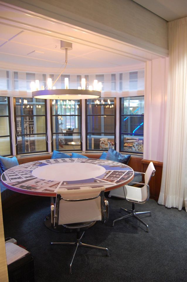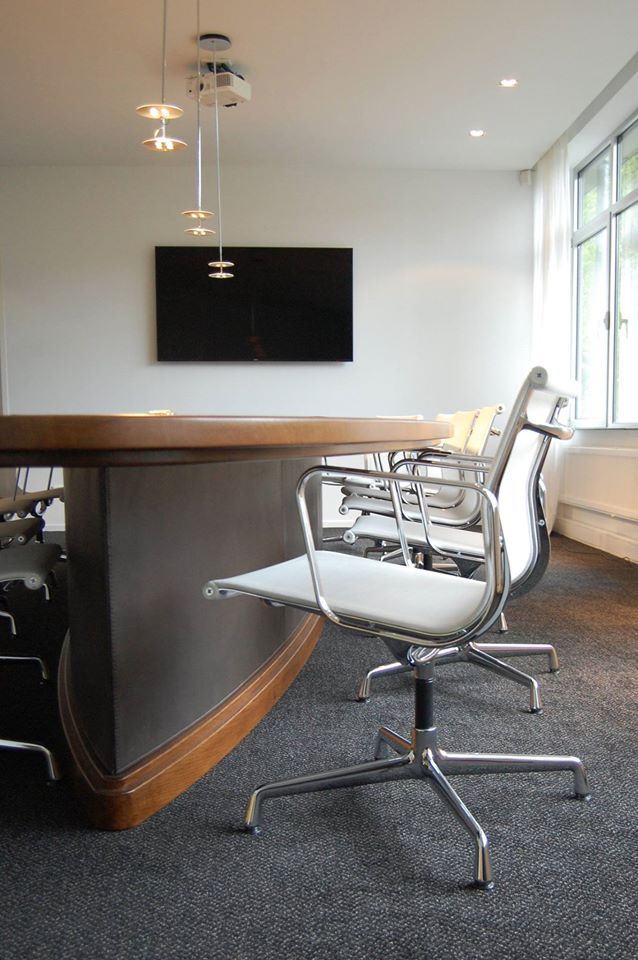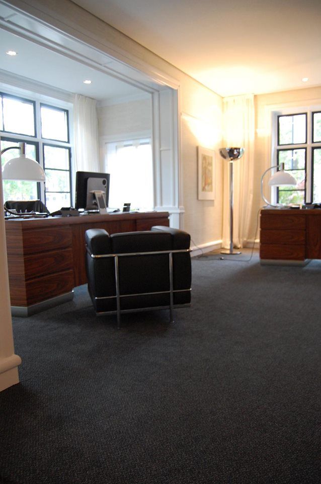 De vorige eigenaar had het pand in een modern jasje gestoken. We hebben de specifieke elementen weer terug gebracht zoals deuren, plinten en lambrisering. Deze zijn geïnspireerd op de originele trap die nog in het pand aanwezig is. Verder zijn de diverse kasten, bureau's en vergadertafel door ons ontworpen en op maat gemaakt.